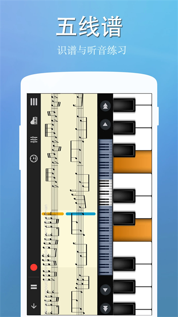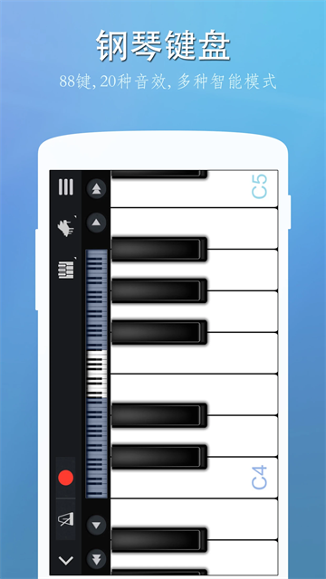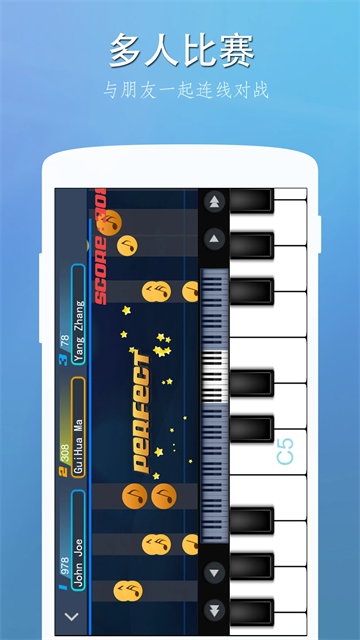 完美钢琴提供88键全键盘、多点触控与力度侦测,还原真实钢琴的演奏感受,可调节琴键宽度、力度灵敏度、音效类型,并支持单排、双排、双人对弹模式,内置10种以上键盘音效,并可下载贝司、电吉他、木吉他、长笛等更多音色插件,内置上千首热门曲谱,提供落球、瀑布流、五线谱三种引导模式,以及自动演奏、半自动演奏、音符暂停三种演奏模式。