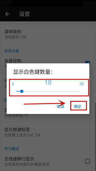 4、左右拖动滑块可更改白色键数量,按键越少则琴键越大。