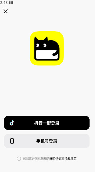 1、打开猫箱,使用手机号或者抖音账号进行注册登入;