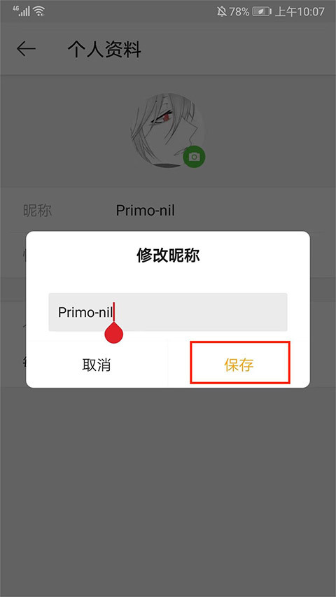 5、进入到修改昵称界面,编辑好新的昵称,然后选择右边的“保存”即可完成修改。