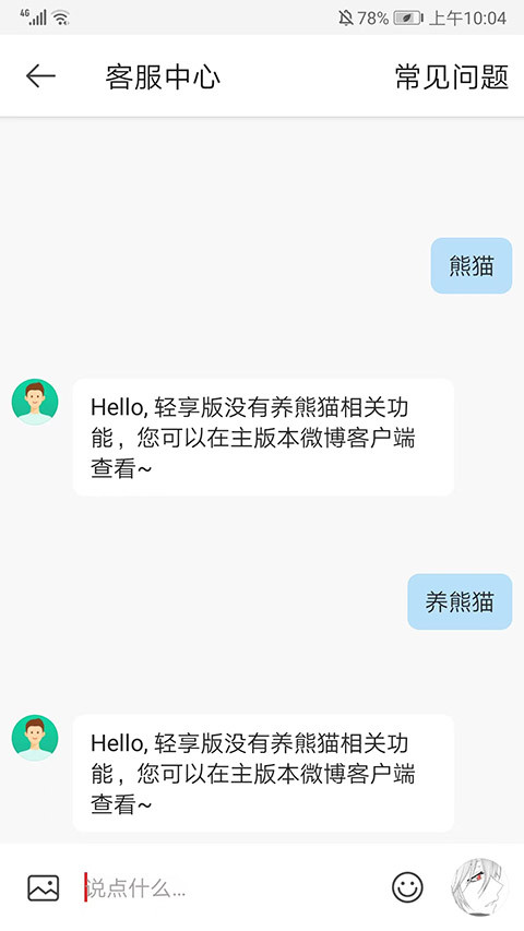 1、打开微博极速版,在客服中心界面,输入“养熊猫”后,可看到系统提示轻享版暂时没有养熊猫的功能,可以在主版本查看养熊猫。