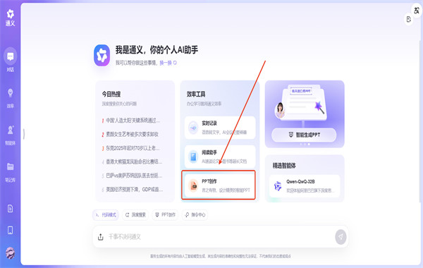 3.也可以登录通义官方网址。https://tongyi.aliyun.com/qianwen/点击效率工具中的ppt创作。