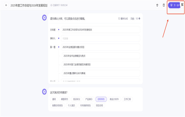 2.这时通义就会提供一份ppt的大纲要点分布给大家参考。