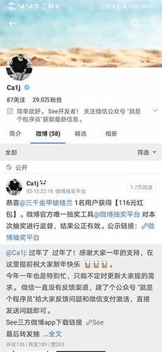See微博的安装包大小为5M左右,Share微博的安装包为17M左右,在这压缩软件大小这方面See微博做的更加极致。