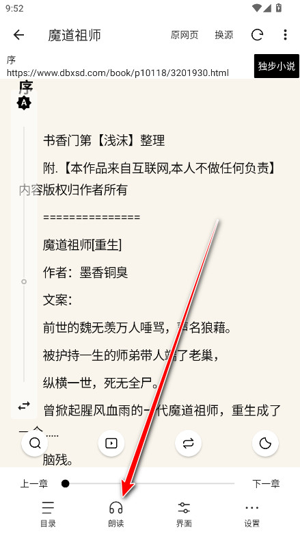 6、在阅读界面,点击下方的界面功能可以自定义阅读界面。