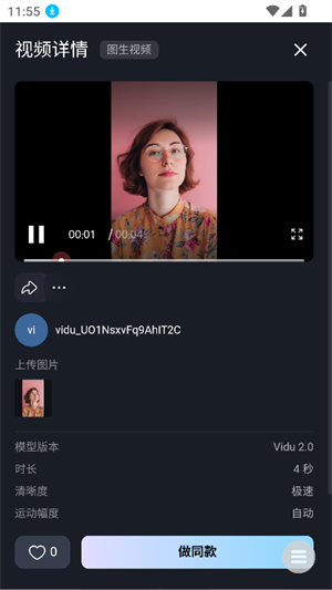4、参考生视频:Vidu2.0相对于Vidu1.5取得了明显提升,语义理解、稳定性、主体相似度都有一定的优化。