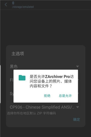 1、打开ZArchiverPro,允许软件访问手机系统文件,请勿点击拒绝!否则将无法使用ZArchiverPro。