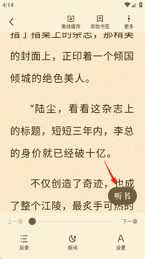 2、进入阅读页面后点击屏幕右下角的听书按钮;