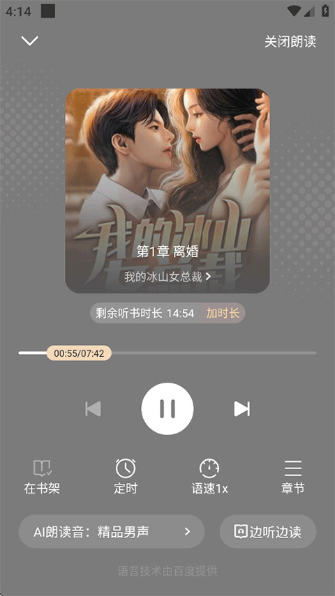 3、在听书播放页还可以设置定时、语速和边听边读等模式。