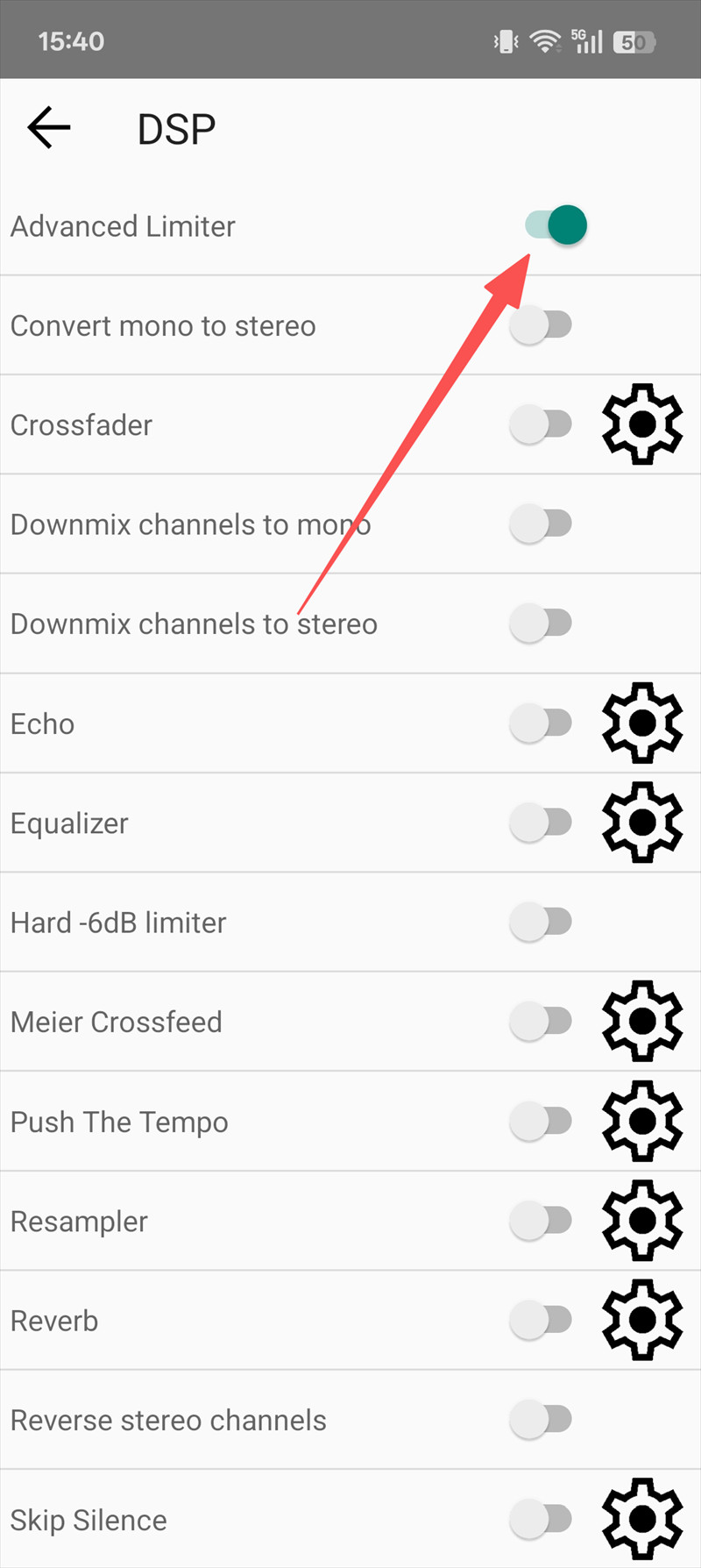 3、Advanced Limiter(高级限幅器)建议打开,长时间使用耳机听歌,此功能可以减轻疲劳,如图所示,点击红圈位置“开启”即可。