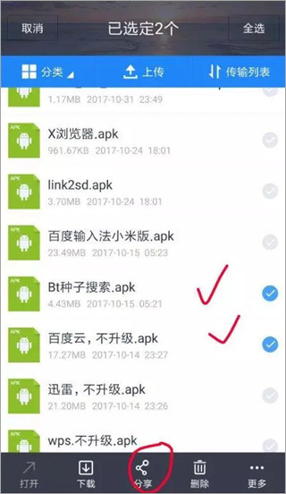 4、打开百度网盘,把自己想下载的文件,使用分享功能。