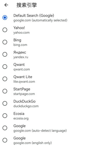 5.在列表里选择你要使用的默认搜索引擎就可以了。