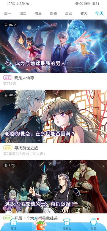 1、进入到漫画台首页之后,在右下角找到我的,点击进入我的页面;