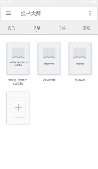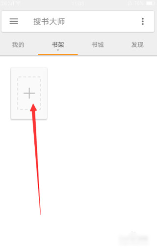 1、打开搜书大师,在书架界面点击“+”号按钮;