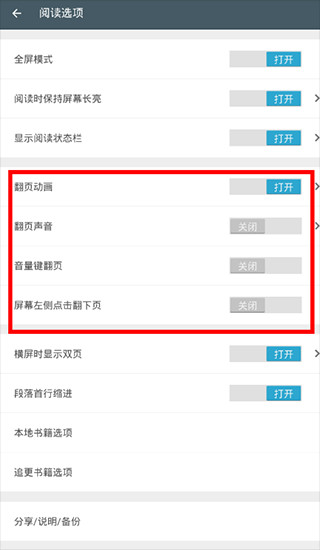 3、接下来从设置页面里,可以从中点击修改翻页的方式,来设置音量键翻页或屏幕左下侧点击翻页。