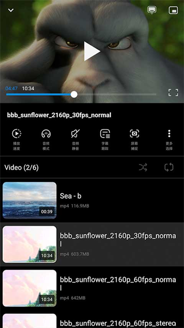 1、FX播放器支持所有视频格式:MKV、MP4、M4V、AVI、ASF、MOV、3GP、FLV、MPG、MOV、OGV、H.264、MPEG4、DIVX、XVID、WMV、RM、TSetc