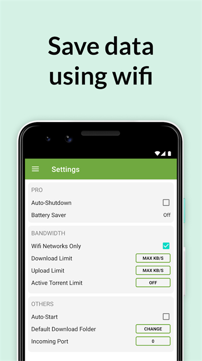 ✔为了获得最佳性能并避免在移动电影和音乐下载时消耗大量数据费用,我们建议尽可能利用仅Wifi模式下的种子和种子