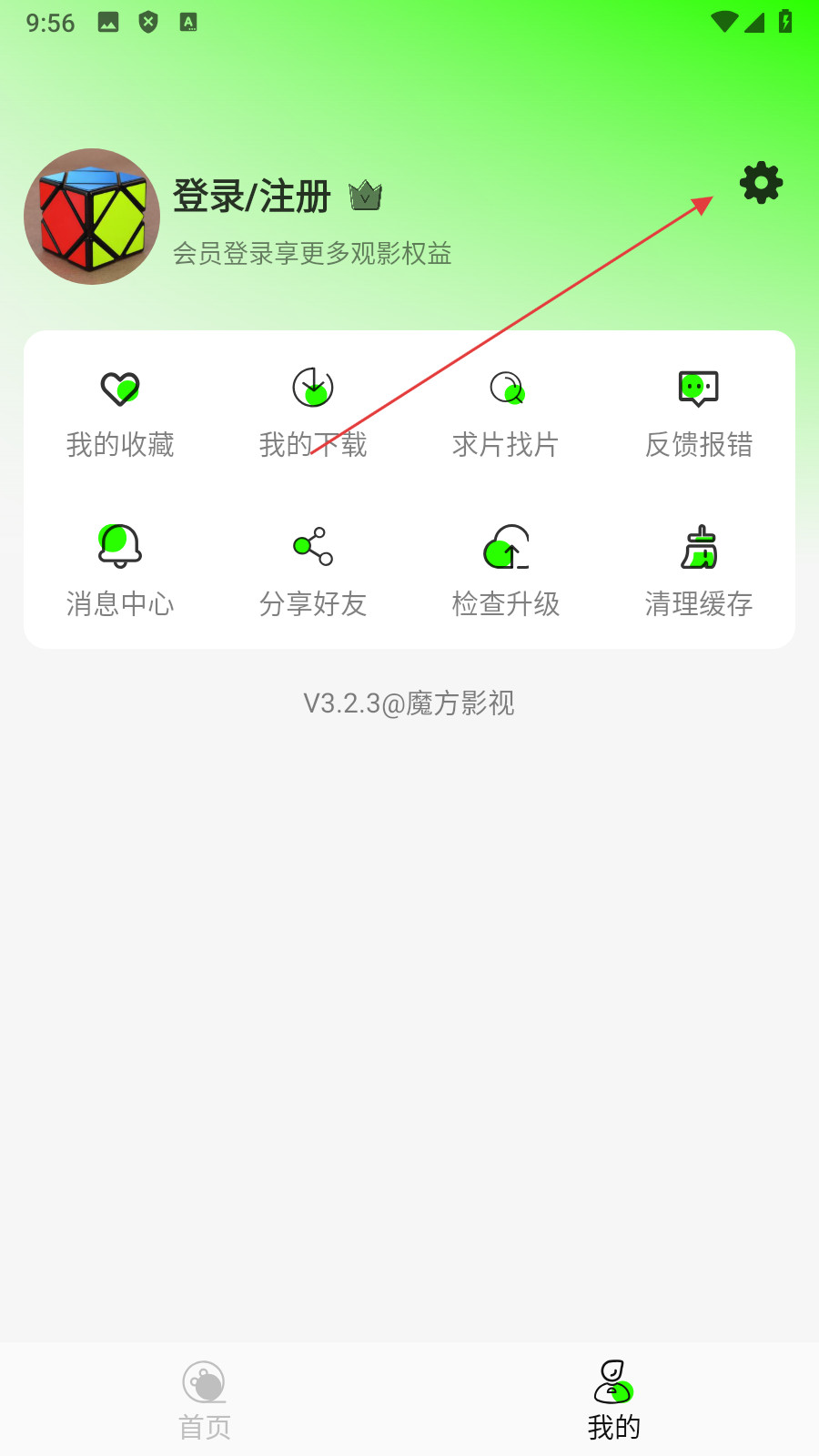 1、打开魔方影视,点击底部【我的】,进入个人中心页面。