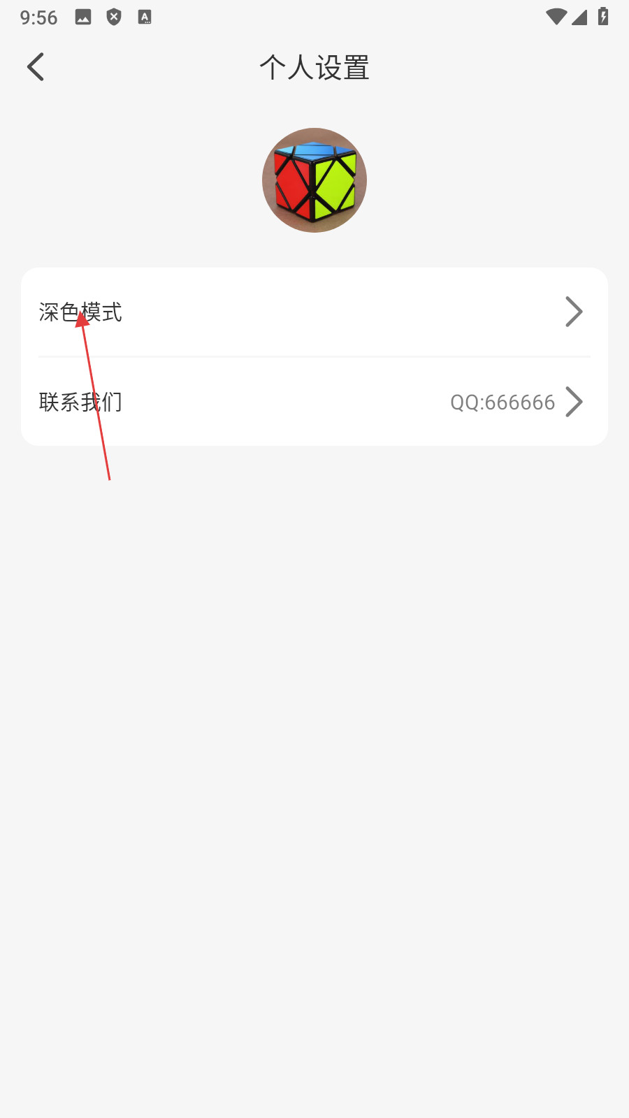 3、在个人设置页面,点击【深色模式】,进入深色模式设置页面。