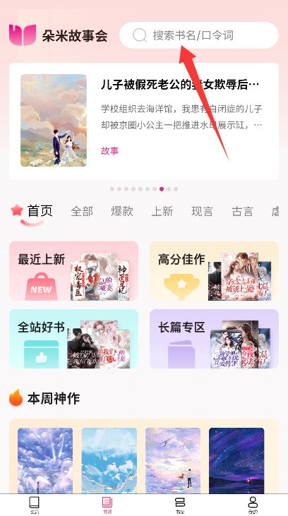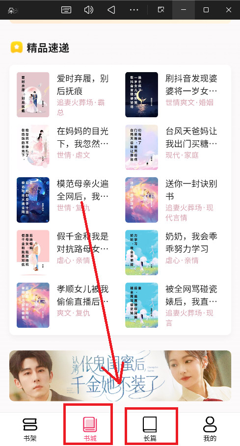 1、打开朵米小说,进入底部的 “书城” 或 “长篇” 页面。