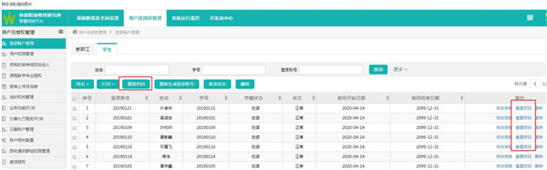 【用户及授权管理】系统的管理员老师可以重置任课老师和学生的密码