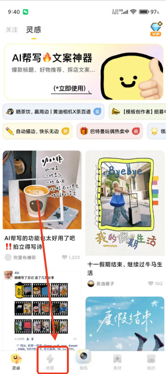 1.点击下方修图页面,