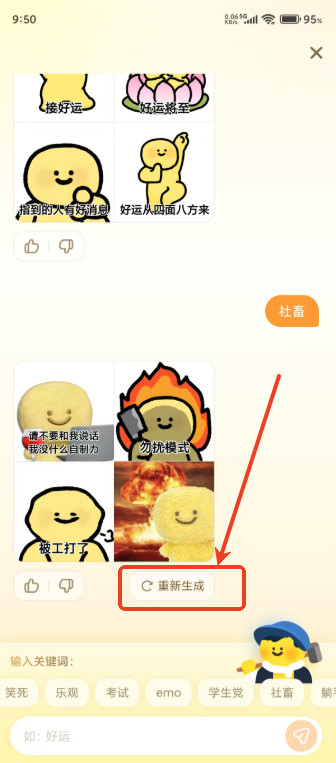 3.根据你的需要输入关键词就得到表情包,