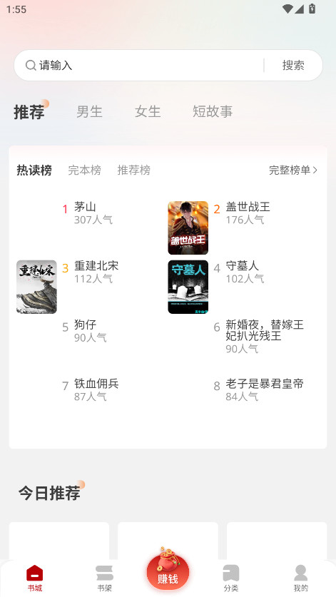 3、成功进入首页之后,可以看到不同分类的小说资源。