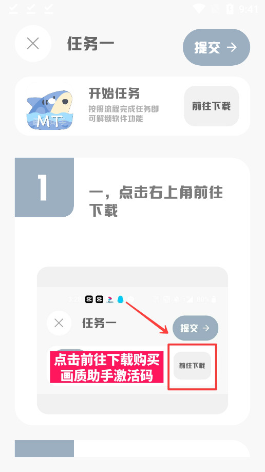 新下载的用户按照任务指引,按要求完成任务并提交,任务成功通过后,可立即获赠一级特权卡以及特权卡的权限。