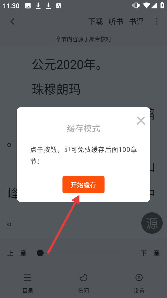4、在弹出的缓存模式窗口中,点击开始缓存,即可缓存后续章节。