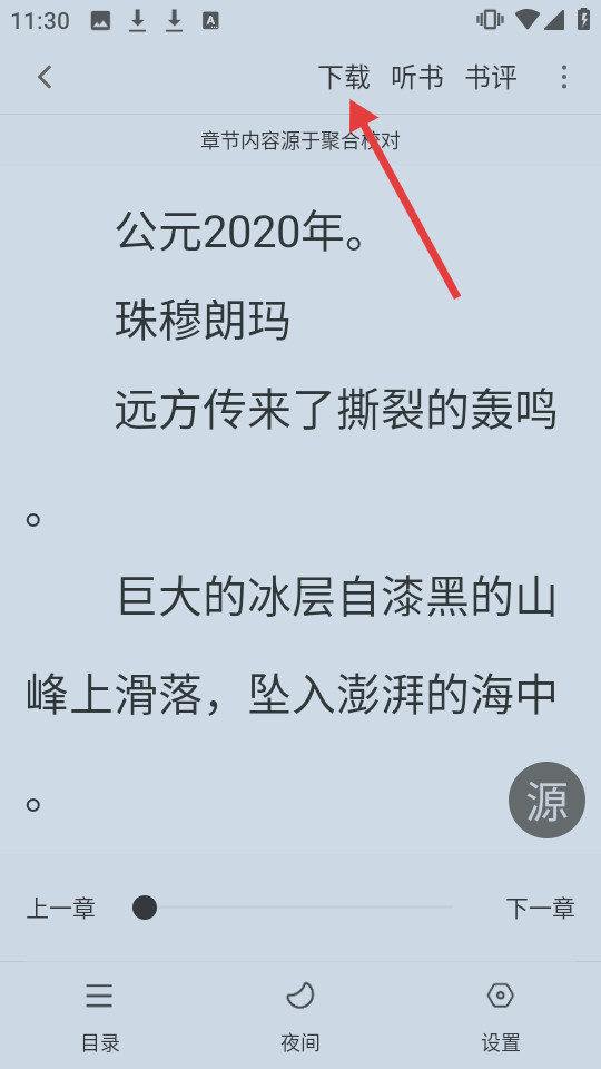 3、在阅读页面,点击顶部下载按钮。