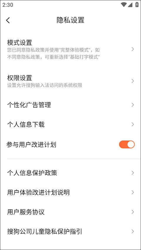 4、在隐私设置中,可以对应用的模式、权限等进行干预;