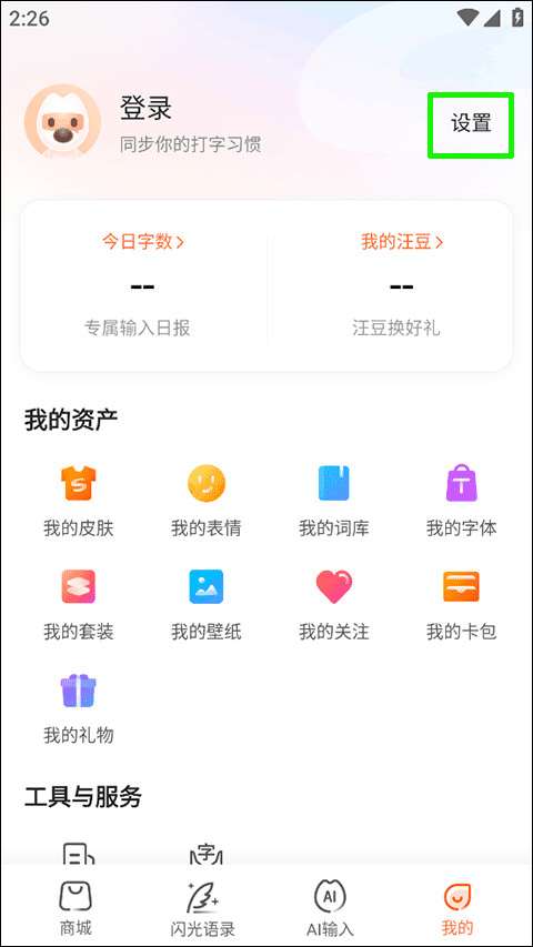 1、打开搜狗繁体字输入法,在我的界面找到并点击“设置”功能选项;