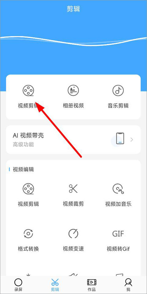 2、剪辑页面可进行视频剪辑、制作相册视频、音乐剪辑以及视频编辑功能,点击剪辑工具;
