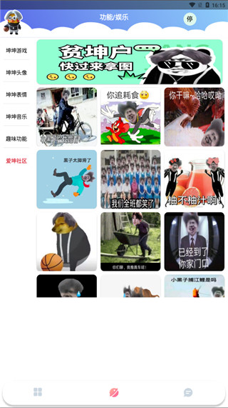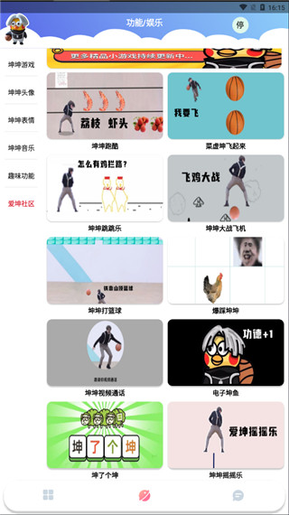 6、另外点击中间的篮球板块,选择坤坤表情可以下载各种坤坤表情包到手机相册中;