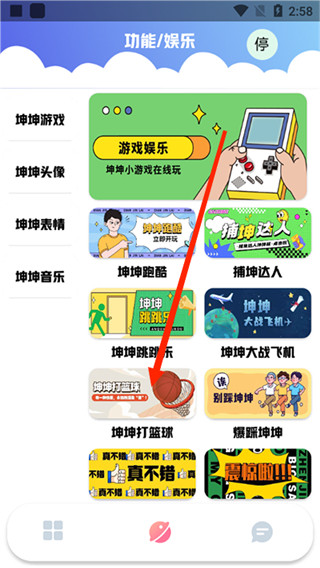 2、在游戏更多游戏界面点击坤坤打篮球,其他游戏也可以玩,非常好玩。