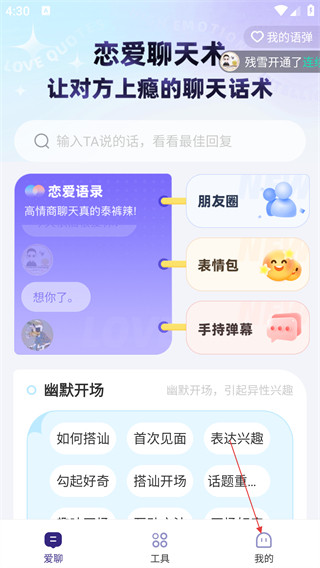 4、实时解决尬聊的话术聊天神器,一键搜索教你如何聊天回复。