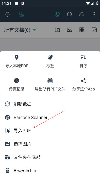 2、在弹出的菜单中,选择【导入PDF】选项,进入文件选择的相关界面。