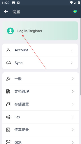 2、在设置页,点击Login/Register选项,进入账号登录注册界面。