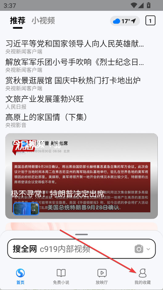 1、打开搜狗浏览器,点击右下角【我的收藏】