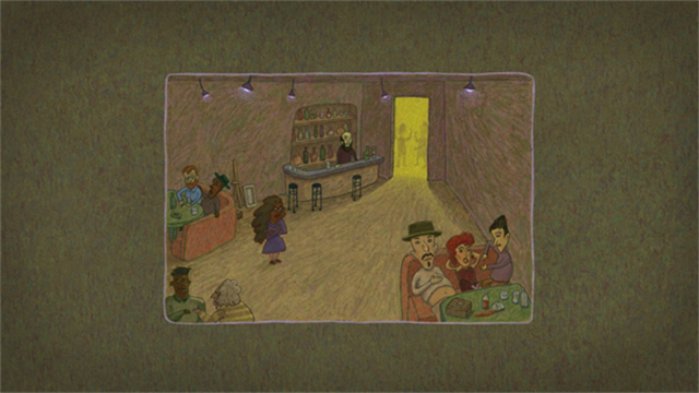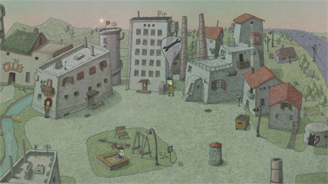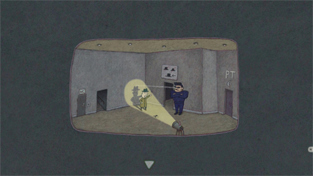 穿过隧道进入医院,找到格子屋进入死胡同,点击右边墙上的画,撕开右下角,最终点击小脑人图案解锁成就。