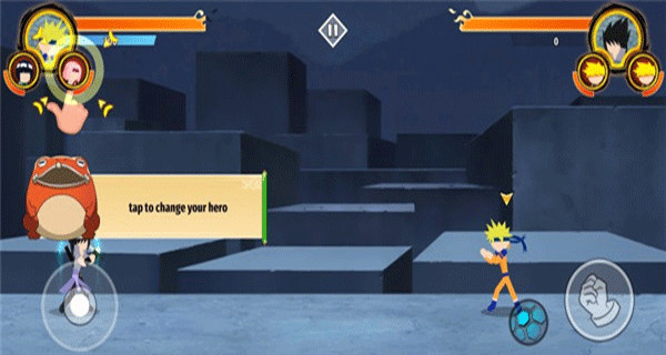 核心是3v3横版小队格斗。你需要组建一个由三名忍者组成的队伍,在横向卷轴的战场上与对手团队作战。通过虚拟摇杆移动,使用普通攻击和技能击败所有对手即可获胜。