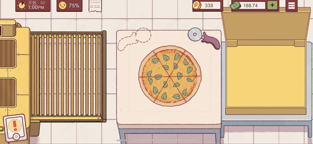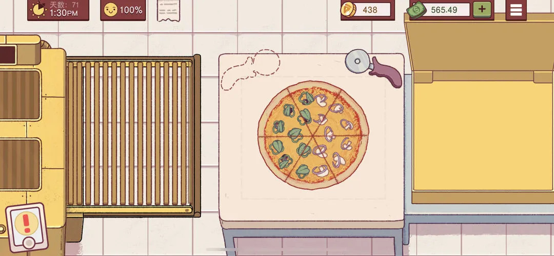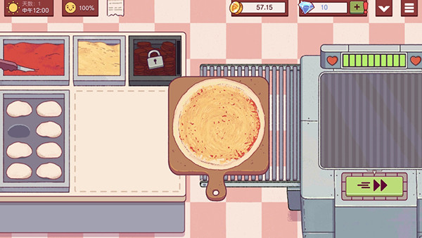 当披萨进入烤箱后,会有一个进度条和音效变化。当进度条快到终点且听到“叮”的一声时,就表示烤好了,需要立刻取出。