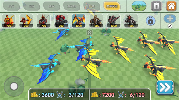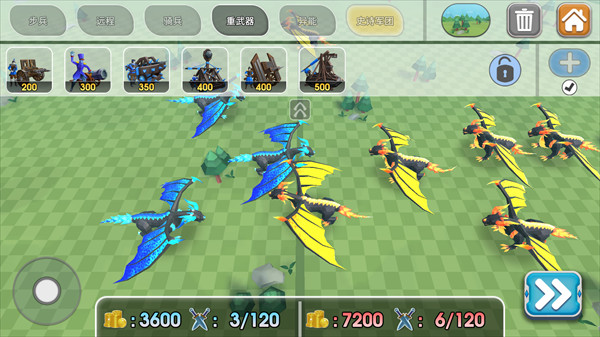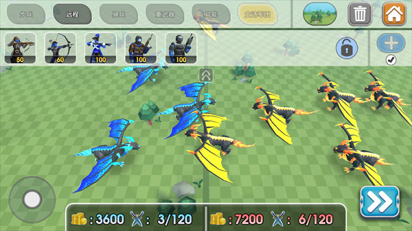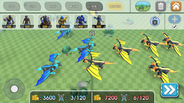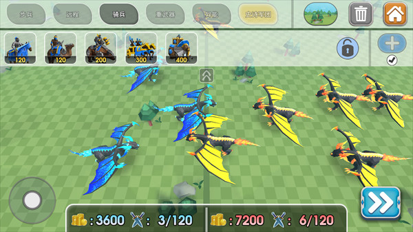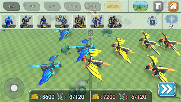 布阵:在战斗开始前,在己方半场自由放置和搭配不同兵种,调整他们的站位、朝向和阵型。这是最关键的一步。