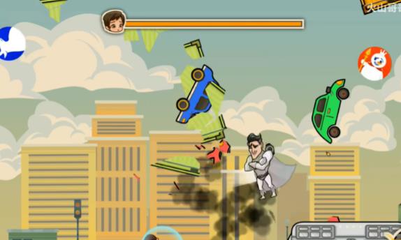 3、游戏二阶段玩家需要抓捕“萝莉”超人,碰到障碍物会减速,碰到电池和“成都之心”会加速,如果速度差异过大“萝莉”超人会直接跑掉。