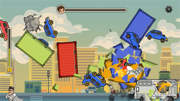 游戏初期障碍物类型较少、速度较慢,随着关卡推进逐渐增加炸弹、高速车辆等复杂元素,同时引入血条机制。