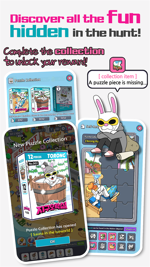 地球娱乐室是一款融合了寻物解谜与经典街机玩法的休闲娱乐合集游戏,游戏将寻找隐藏物品的观察力挑战与多种快节奏的经典街机小游戏相结合,让玩家能体验多种爽快游戏,乐趣无限。玩家可以体验寻找物品的乐趣,搜集拼图碎片,还可以解锁新的游戏角色、场景和内容,新鲜感源源不断。游戏画面色彩鲜艳,画风可爱软萌,适合释放压力,放松心情。