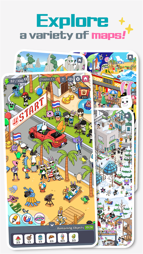 寻物解谜模式:在复杂的场景中,根据列表找出所有隐藏的目标物品。