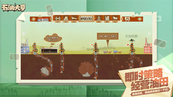 4、石油大亨仓库的油并不需要手动卖,出现这种情况说明你的运力不足了。马车是优先取抽油机中的油来卖的,在马车闲下来的时候就会自动取仓库的油来卖给目标公司。