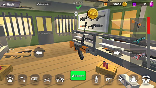 4、前往像素沙盒世界体验激情枪战,各样武器赛车由你来操控,与敌人疯狂竞技,消灭他们获得胜利